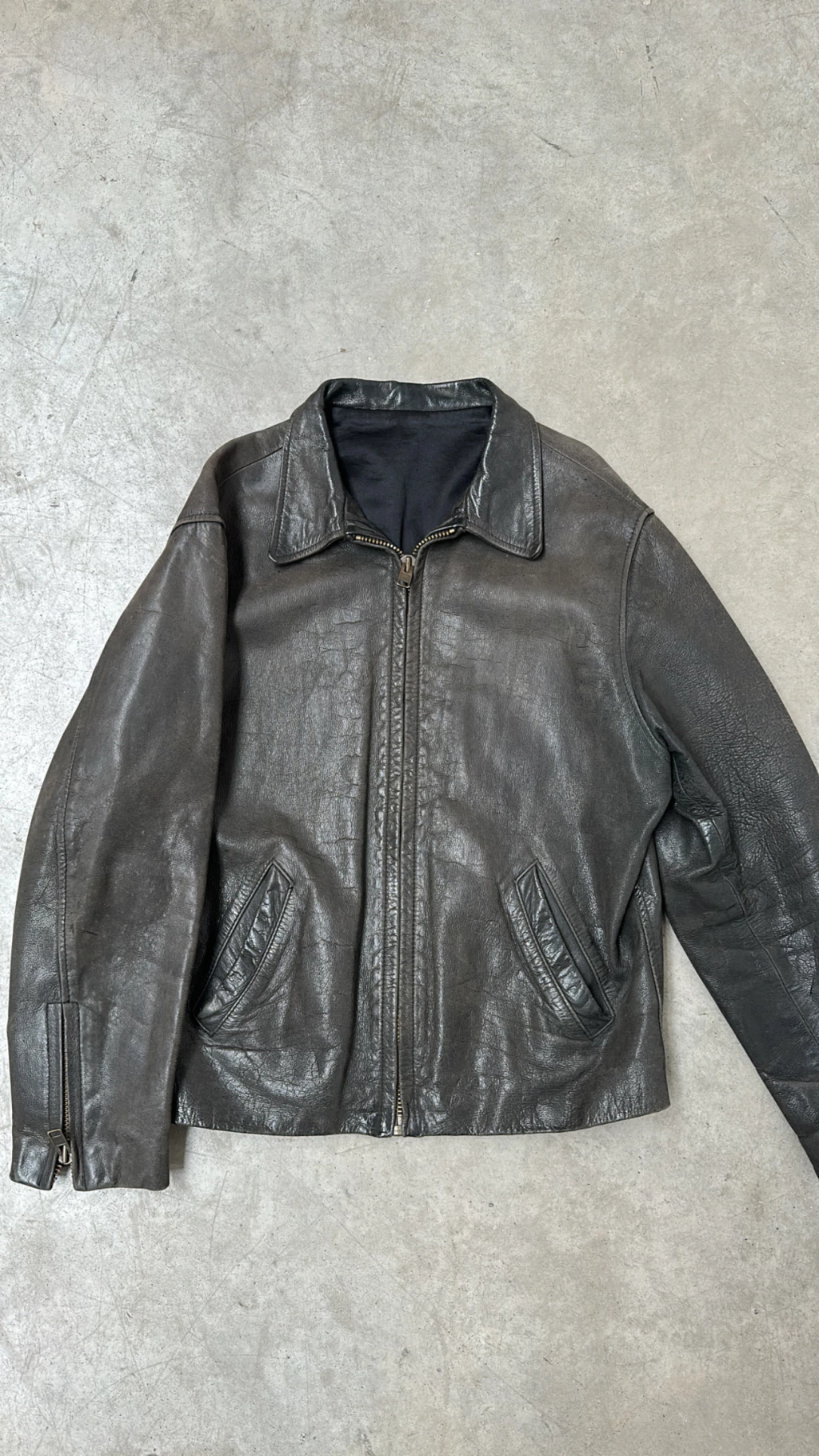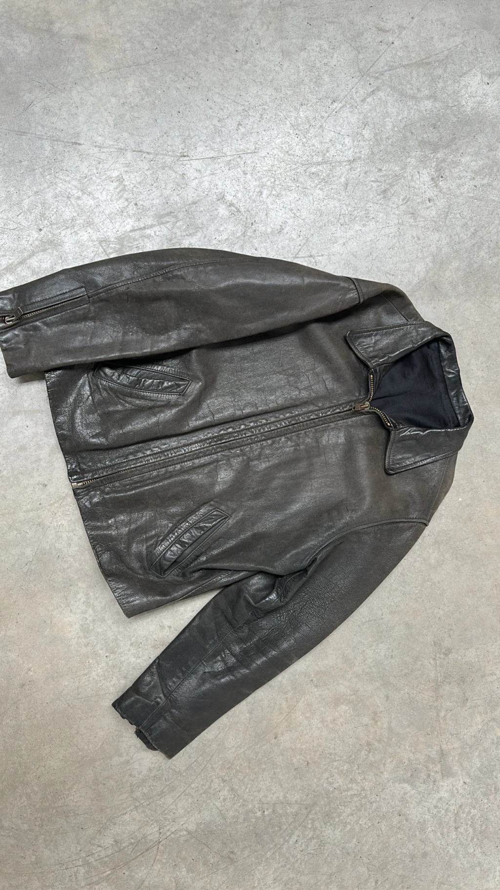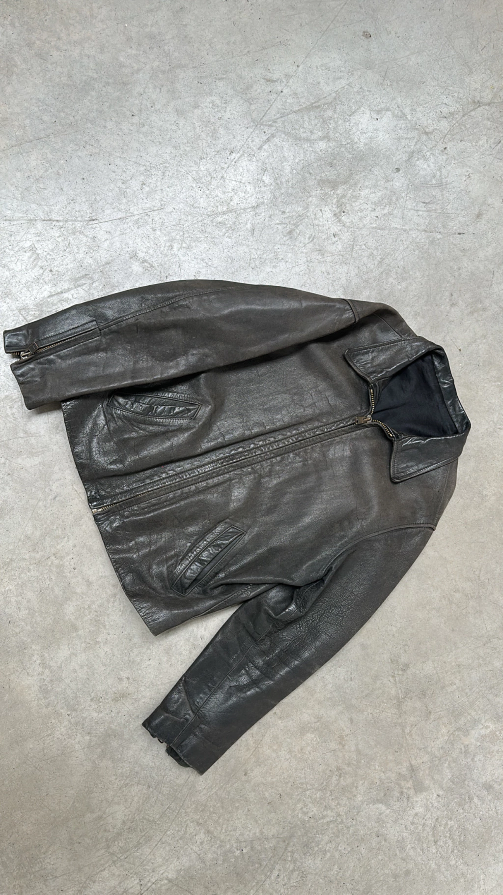 Campera 100% cuero color gris gastado. Interior forrado. Calce oversize.