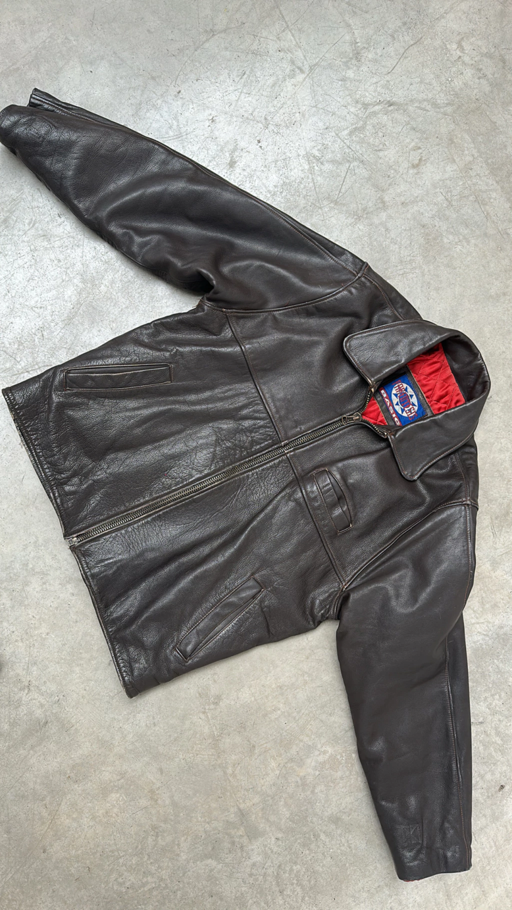 Campera 100% cuero color marron oscuro. Interior forrado matelaseado. Calce oversize.