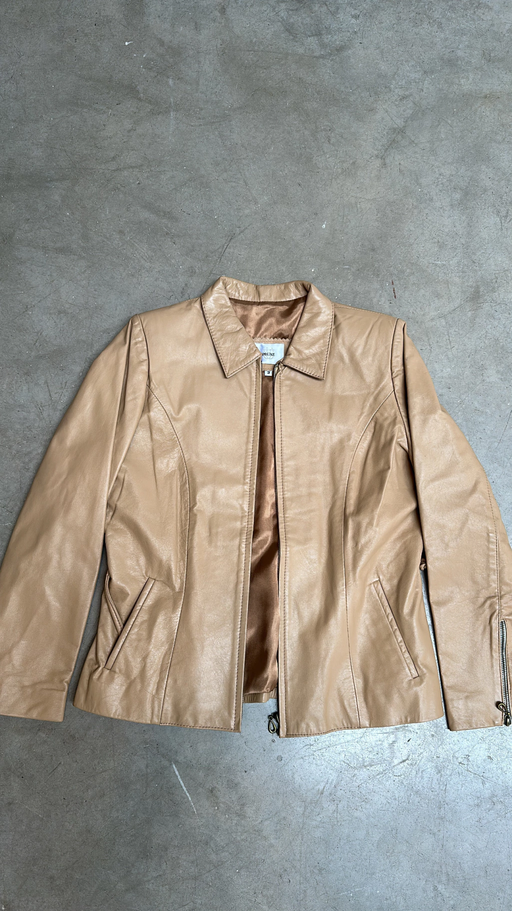 Campera 100% cuero corte clasico color beige. Interior forrado. Calce al cuerpo.