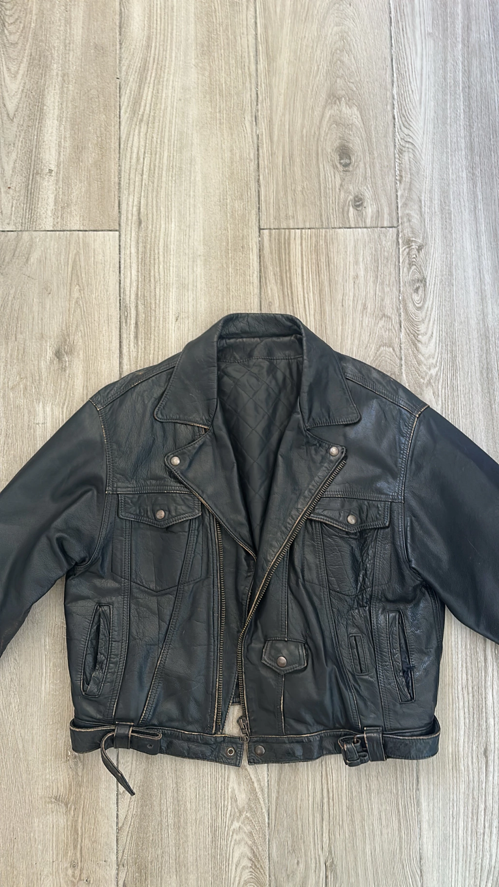 Campera biker 100% cuero. Unisex. Ideal para usar de día y de noche. Tiene cierre y bolsillos. Interior forrado.